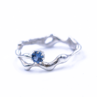 Wavy Ring er en unik ring med bølgede former der holder en smuk blå sten. Ringens former reflekterer lyset og skaber et fantastisk spil. Alle ringe er håndlavet og der er derfor ingen der er helt ens.